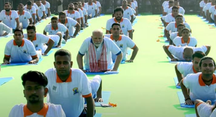 (ग्रेटर नोएडा) 11वें अंतर्राष्ट्रीय योग दिवस के मौके पर प्रधानमंत्री नरेंद्र मोदी ने आंध्रप्रदेश के विशाखापट्टनम में तीन लाख लोगों संग योग किया। इस मौके पर पीएम मोदी ने योगा फॉर वन अर्थ, वन हेल्थ को वैश्विक संकल्प बनाने की जरूरत बताया। आइए हम सभी एक साथ मिलकर योग को एक जन आंदोलन बनाएं। इस दौरान योग दिवस समारोह में आंध्र प्रदेश के सीएम चंद्रबाबू नायडू और डिप्टी सीएम पवण कल्याण ने भी भाग लिया। पीएम मोदी ने आगे कहा कि 21 जून को 11वीं बार पूरी दुनिया एक साथ योग कर रही है। योग ने पूरे विश्व को एक सूत्र में बांध दिया है। योग का सीधा सा अर्थ है कि जुड़ना। वहीं देश के अलग-अलग हिस्सों में लोग योग दिवस मना रहे हैं।